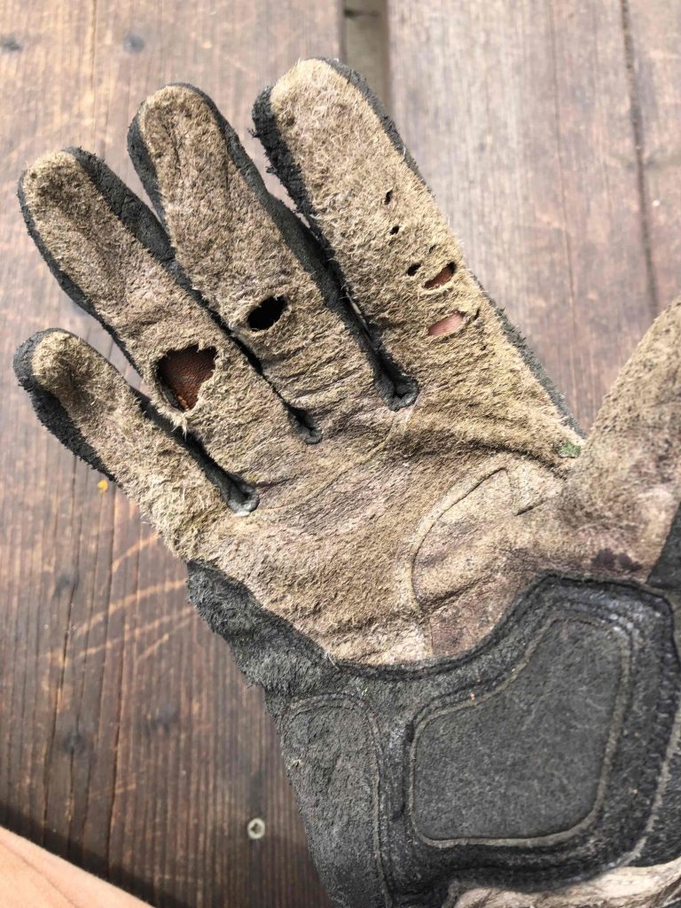 Ondertussen begin ik langzaamaan de tuin te leren kennen. Ik ben er iets te laat achter gekomen dat we ook verantwoordelijk zijn voor de taluds aan de openbare wegkant en aan de communale weg, dus buitenom ons terrein. Daar stonden inmiddels bramen zo dik als boomstammen en stekels zo scherp als scheermessen. De truc is om motorhandschoenen over tuinhandschoenen aan te trekken en om gamaschen (normaal om mijn kuiten bij natte/winterse wandelingen), om mijn onderarmen te doen. Dan blijf ik redelijk onbeschadigd. Maar na vele dagen bramen killen zijn zelfs de BMW-motorhandschoenen stukgestekeld. Volgende keer oesterhandschoenen dan maar? Ik heb principieel geen bramen gegeten. Zoiets als geen Russische gas willen zolang Poetin in de Oekraïne zit. Maar toen las ik een stuk over de medicinale werking van bramen en ook over oude mythologische (b)raamvertellingen. Ik heb er daarom eentje veilig in een pot staan en een ander in de berm laten staan. Extremisme bestrijden begint bij jezelf.