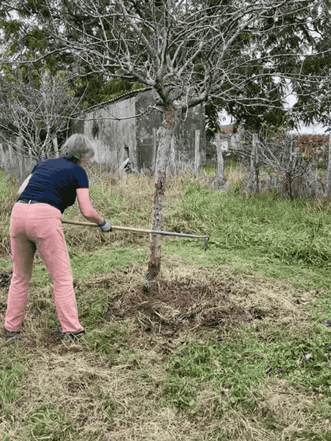 Dan maar de tuin in, voor de broodnodige en gelukkig talloze zenmomenten. Vorige week hebben we met hulp van Herald en Marieke de boomgaard opgeknapt, de bomen hebben erg veel last van droogte en ziektes, en we wilden ze wat bevrijden van die lasten. Dat was dus gras weghakken en maaien, snoeien, huggen en mulchen. We gaan het zien of de bomen dat net zo fijn vinden als wij.